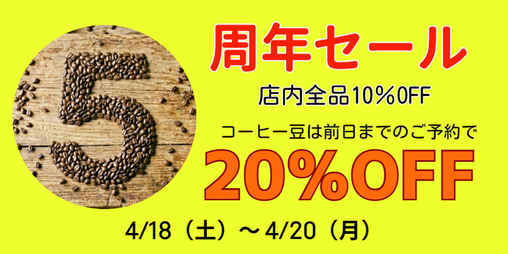 ◆コーヒー豆は前日までのご予約に限り20%OFF